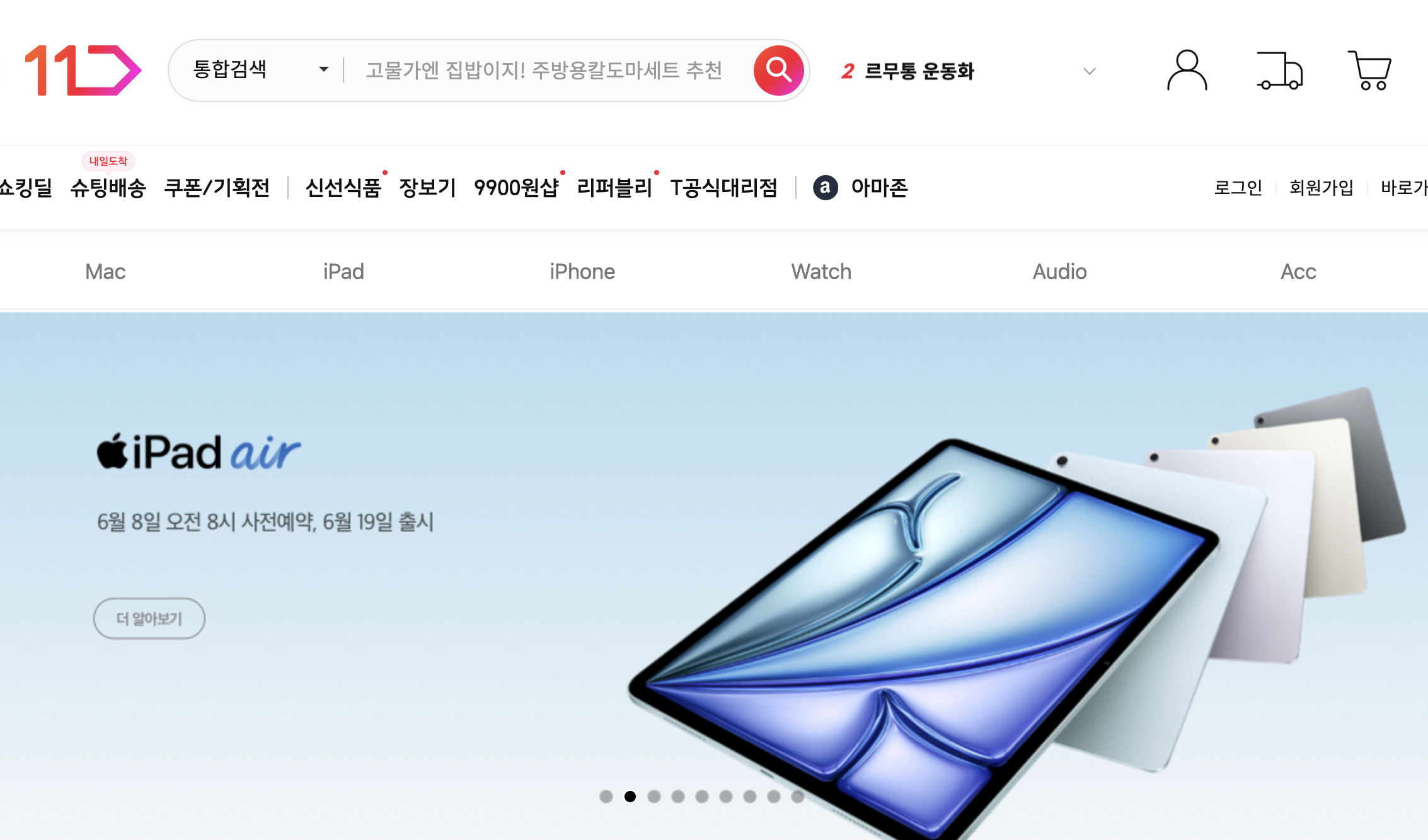 | 아이패드 에어 6세대 사전예약 | 2024년 6월 8일(토) 오전 10시 |